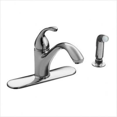 Kohler K-10412-BN Forte single-control kitchen sink faucet with sidespray and lever handle, Brushed NickelVersatile design and effortless installation combine in this ADA-compliant FortÃÆÃâÃâ '© single-control kitchen faucet and sidespray. A one-piece ceramic disc valve crushes and removes line debris and a high-temperature limit stop keeps the temperature at a safe level. A Vibrant Finish for Life and solid metal construction ensure years of beauty and performance. A 3/8" fitting on hoses and 22" flexible stainless steel supplies make simplify installation.Kohler K-10412-BN Forte single-control kitchen sink faucet with sidespray and lever handle Features:; 22" stainless steel braided flexible supply hoses; One-piece ceramic disc valve crushes and removes line debris for leak-free faucet; High-temperature limit stop allows you to preset a comfortable maximum temperature to eliminate scalding; 3/8" fitting on hoses fastens directly to stops for faster hook-up; Solid metal construction ensures years of beauty; ADA-compliant