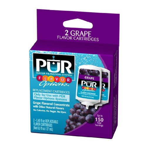 PUR Water Filtration Flavor Options. It is only for use with PUR Flavor Options Systems. Grape Flavor Concentrate with no sugar, calories, or dyes. Lasts up to 150 total servings and includes (1) 0.45 fl oz Cartridges.